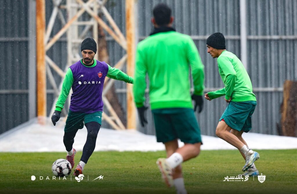 تمرین امروز پرسپولیس در شرایطی برگزار شد که بارش باران، فضای خاصی به آمادهسازی سرخپوشان داد.