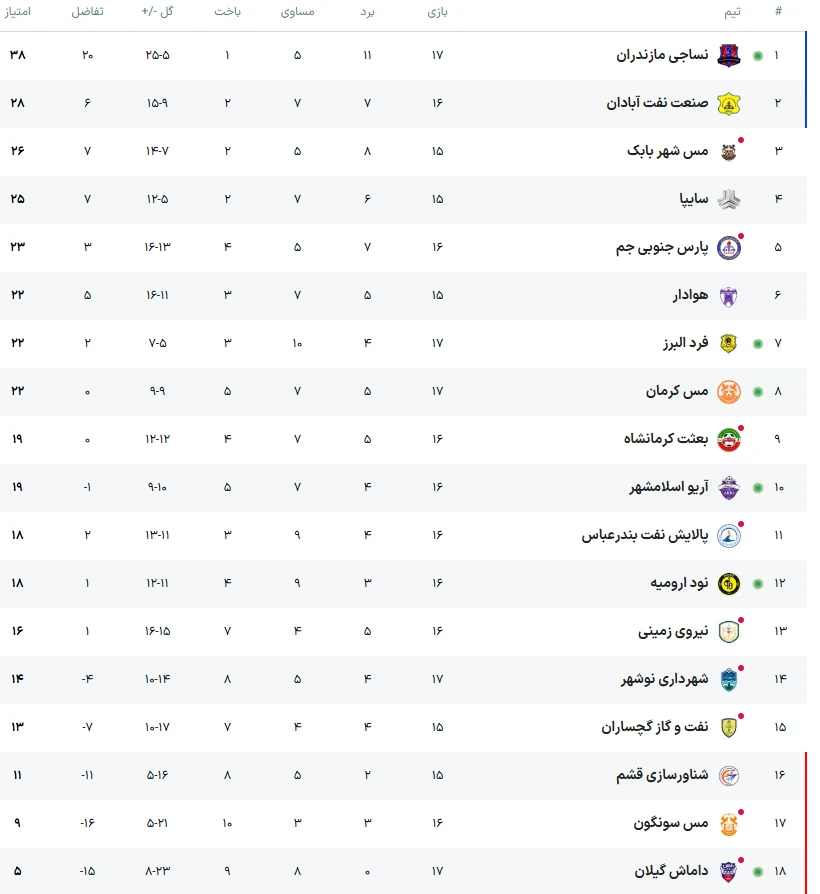 با این پیروزی، نساجی مازندران با ۳۸ امتیاز همچنان صدرنشین قاطع جدول لیگ یک باقی ماند. در سوی مقابل، آریو اسلامشهر با تحمل این شکست، ۱۹ امتیازی ماند و در جایگاه دهم جدول قرار گرفت.