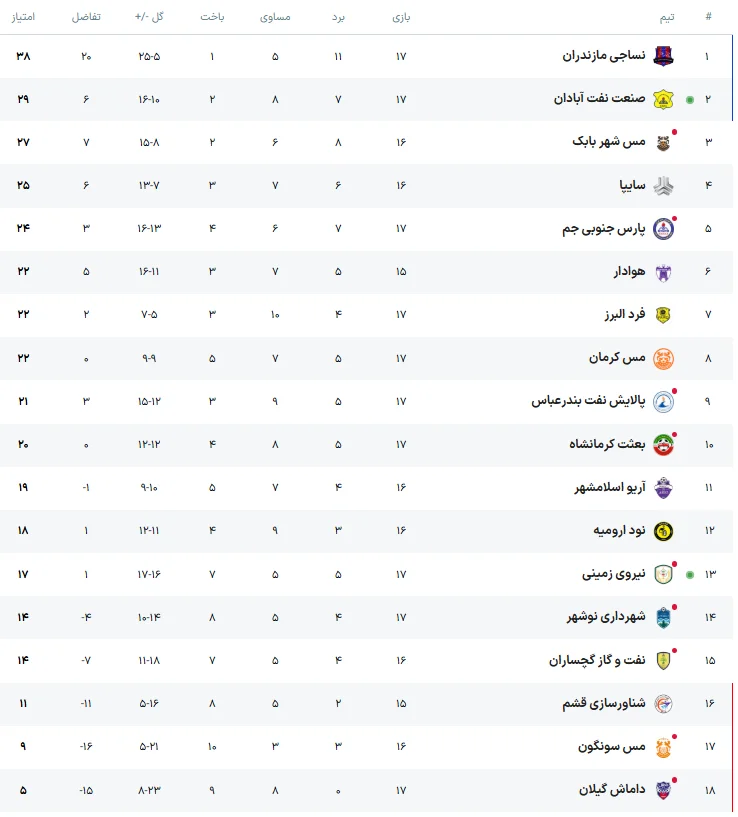 دیدار صنعت نفت آبادان و نیروی زمینی در هفته هفدهم لیگ آزادگان با تساوی یک-یک به پایان رسید.