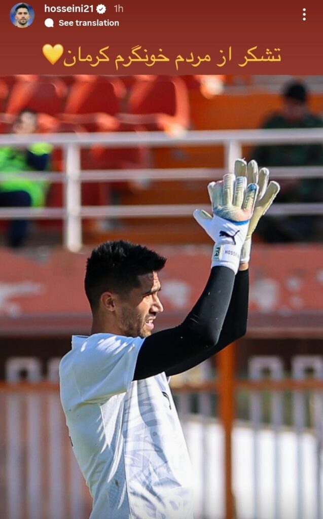 در پایان این بازی و پس از پیروزی سپاهان، حسینی با انتشار یک استوری از هواداران کرمانی تشکر کرد.