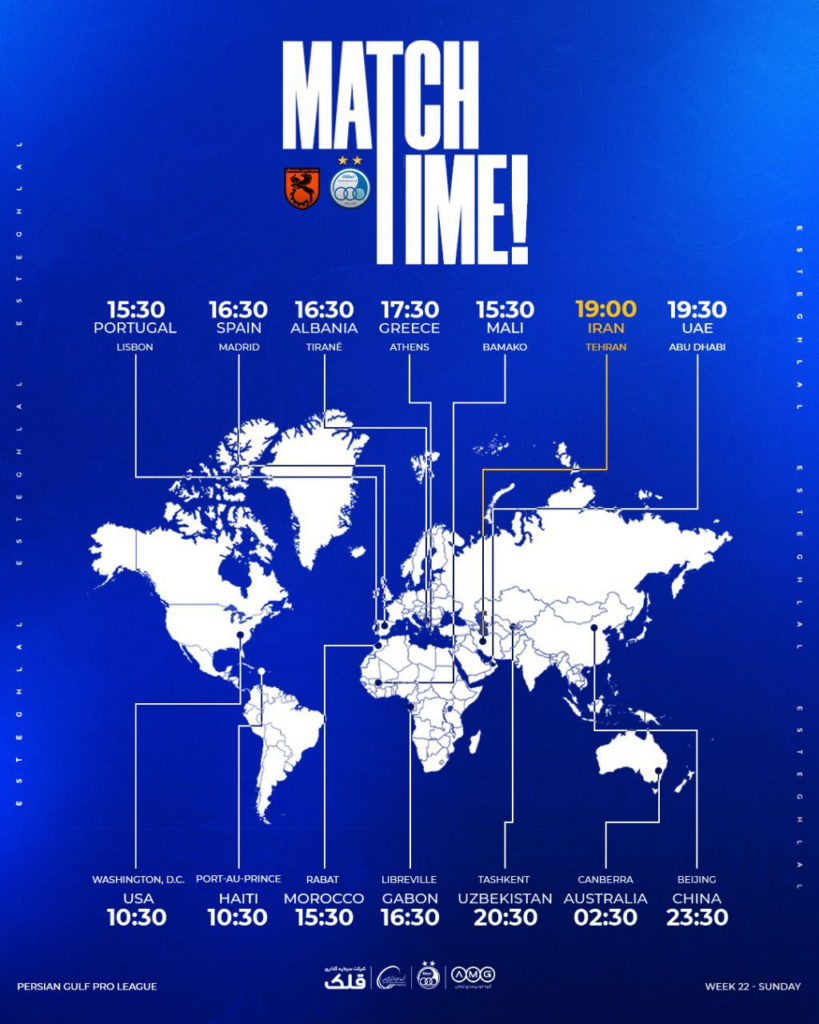 دیدار فردا مس رفسنجان و استقلال از ساعت ۱۹:۰۰ به وقت ایران برگزار میشود.