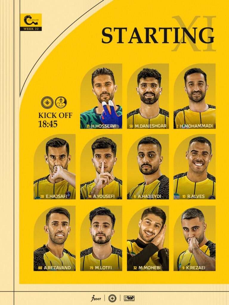سیدحسین حسینی، محمد دانشگر، هادی محمدی، احسان حاج صفی، آریا یوسفی، عارف حاج عیدی، ریکاردو آلوز، آرش رضاوند، محمد لطفی، محمد مهدی محبی و کاوه رضایی.