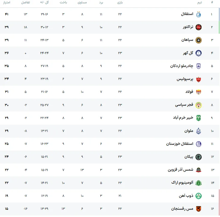 به گزارش هفت ورزشی، در چارچوب هفته بیستوسوم رقابتهای لیگ برتر، امروز چهار مسابقه برگزار شد که نتایج آن تأثیر قابل توجهی بر جایگاه تیمها در جدول داشت و معادلات بالای جدول را تا حد زیادی تغییر داد.