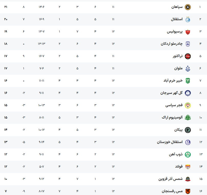 به گزارش هفت ورزشی، هفته دوازدهم لیگ برتر فوتبال ایران با صدرنشینی سپاهان به پایان رسید.