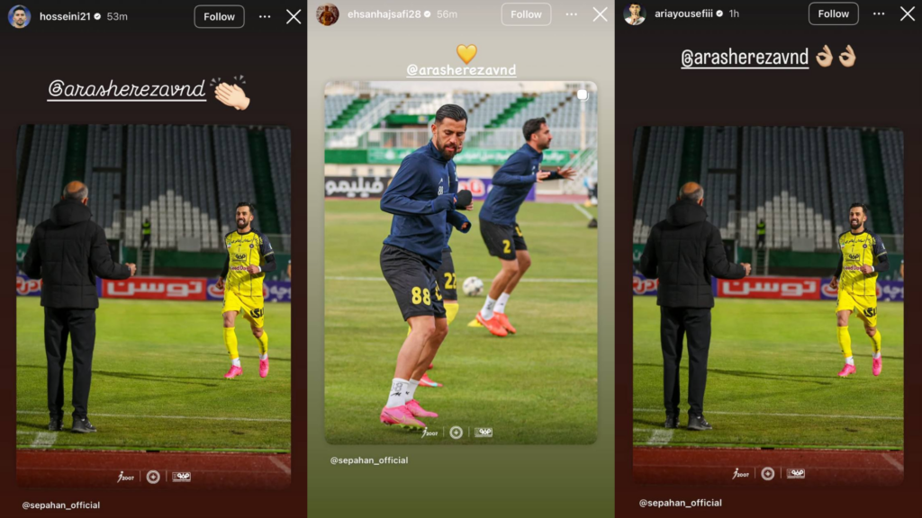 پس از گل مهم و تماشایی آرش رضاوند مقابل آلومینیوم، چند چهره شاخص سپاهان از جمله احسان حاجصفی، سید حسین حسینی و آریا یوسفی در صفحات شخصی خود از او قدردانی کردند.