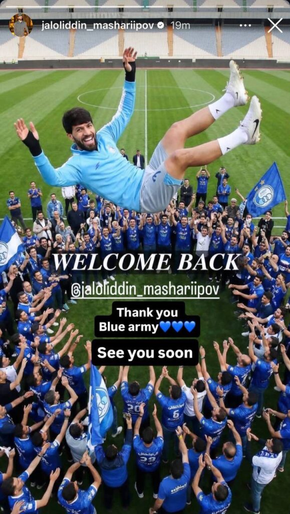 به گزارش هفت ورزشی، جلالالدین ماشاریپوف، هافبک ازبکستانی استقلال، پس از پایان دوران مصدومیت خود با انتشار استوری در صفحه شخصیاش، پیام بازگشتش را به هواداران آبیها منتقل کرد.