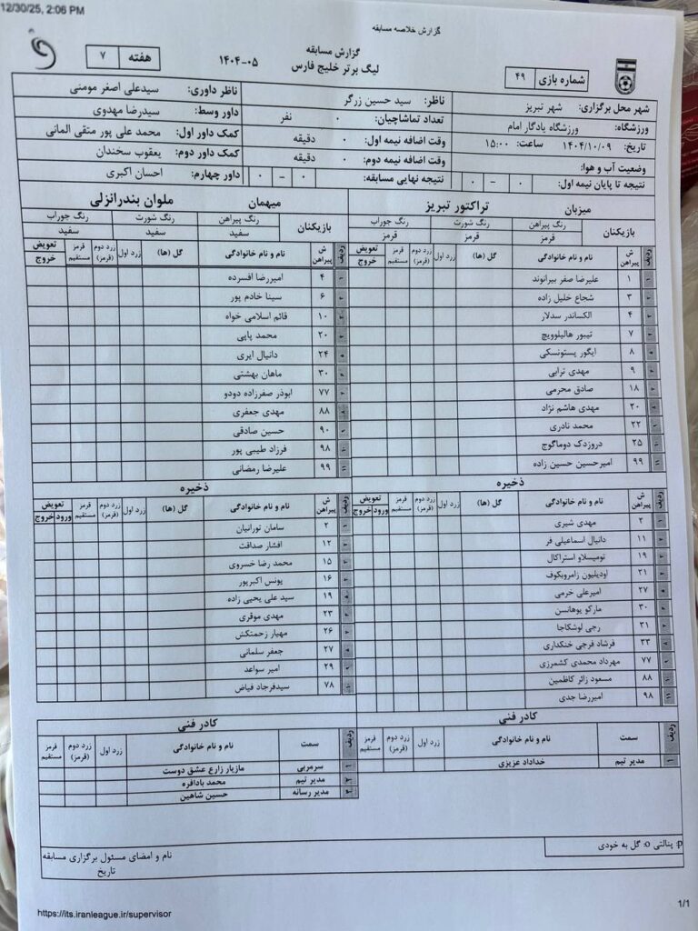 داوران| داور: سیدرضا مهدوی کمکها: محمدعلی پورمتقی، یعقوب سخندان، احسان اکبری ناظر: علی اصغر مؤمنی داور VAR: کوپال ناظمی کمک: سعاد وفاپیشه