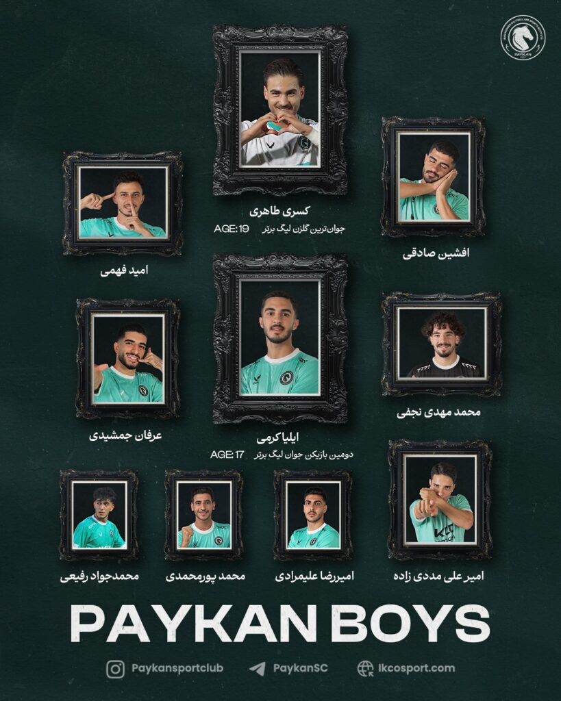 ایلیا کرمی 17 ساله که عنوان دومین بازیکن جوان لیگ را به خود اختصاص داده و کسری طاهری 19 ساله که مصدومیت بدموقع به طور موقت روند موفقیتآمیز او را متوقف کرد، جوان ترین بازیکنانی هستند که پیراهن پیکان را برتن کردند.