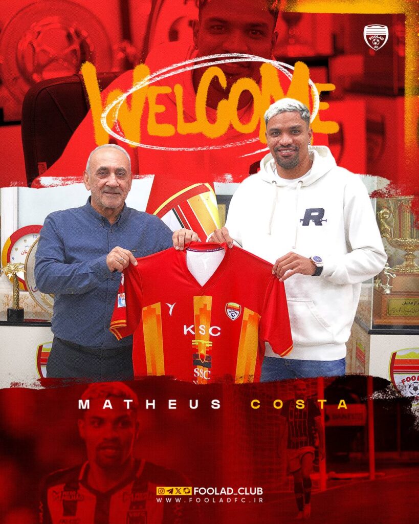 ماتئوس کوستا بازیکن ۲۶ ساله اهل برزیل که در پست وینگر و مهاجم بازی می کند با عقد قرارداد رسمی به جمع فولادی ها پیوست.