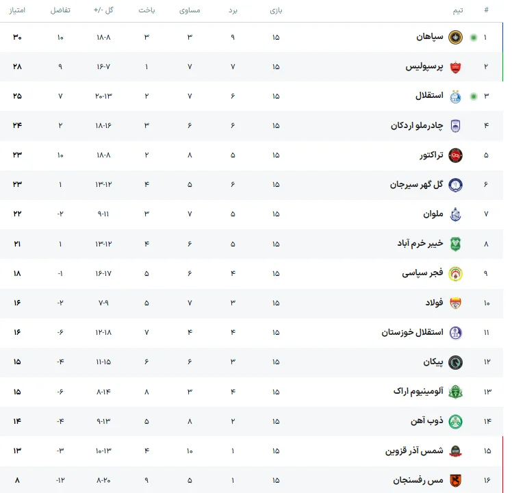 پیروزی استقلال مقابل سپاهان در اصفهان، معادلات بالای جدول را در پایان نیمفصل اول تغییر داد.