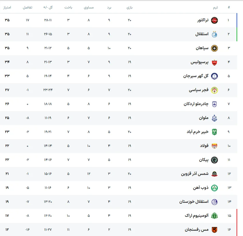 در روز دوم هفته بیستم لیگ برتر، فجرسپاسی با شکست تراکتور و سپاهان با پیروزی مقابل خیبر خرمآباد، تغییراتی در ردهبندی جدول ایجاد کردند.