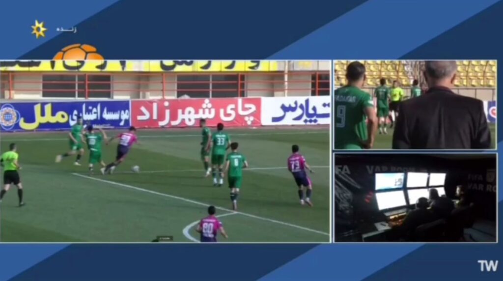 در این صحنه، داور برخورد امیرمحمد محکمکار با کوروش اژدهاکش را خطای پنالتی تشخیص نداد و پس از بررسی VAR دستور به ادامه بازی داد.