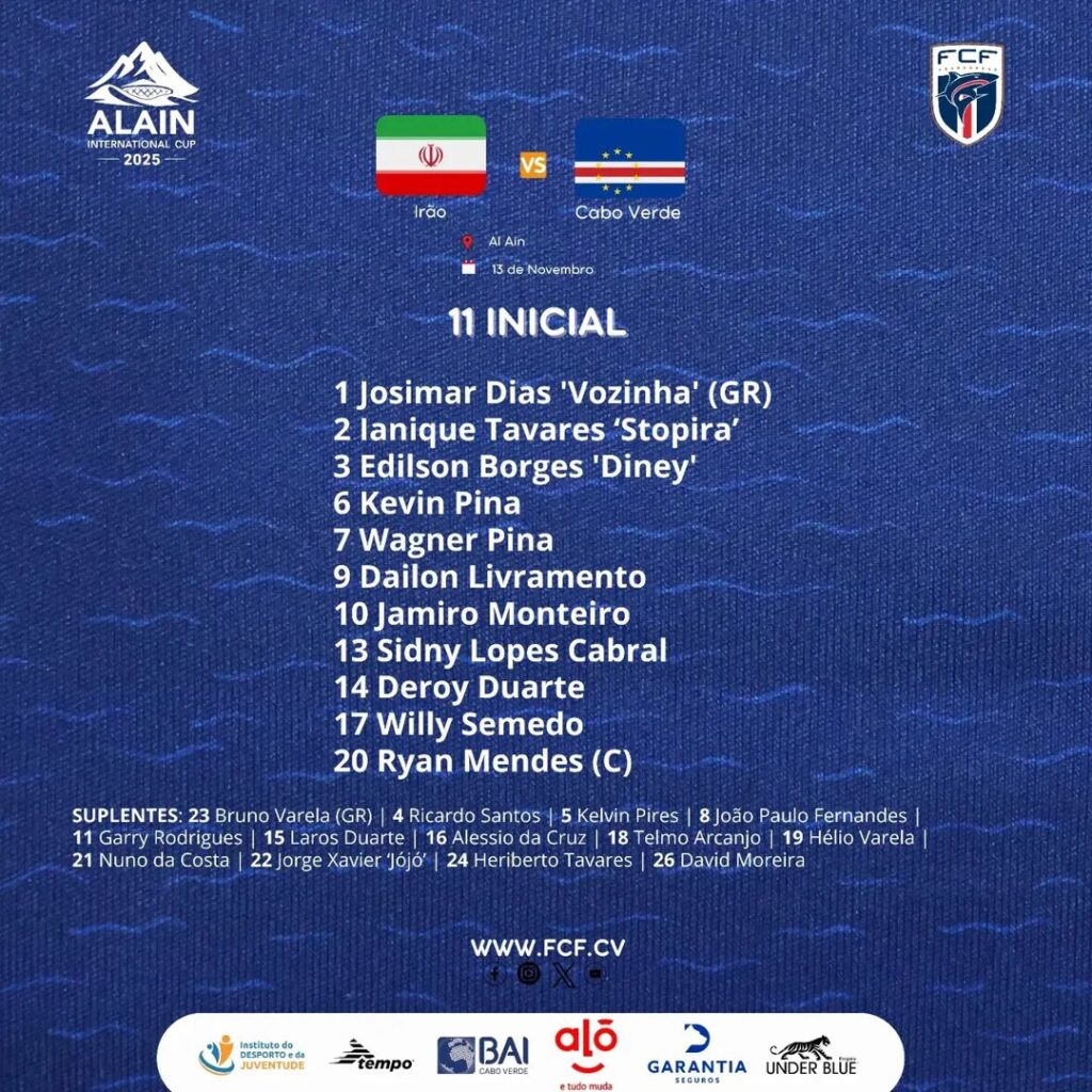 سرمربی تیم ملی کیپورد، پدرو بریتو ملقب به «بوبیستا»، ترکیب اصلی شاگردانش برای دیدار دوستانه مقابل ایران در تورنمنت چهارجانبه العین را مشخص کرد.
