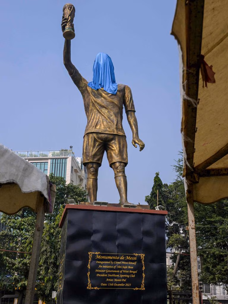 به گزارش هفت ورزشی، لیونل مسی، فوقستاره آرژانتینی و باشگاه اینتر میامی، قرار است روز شنبه مجسمه ۲۱ متری خود را در کلکته، هند رونمایی کند. این مجسمه آهنی که مسی را در حالی نشان میدهد که جام جهانی را بالا گرفته، بخشی از تور موسوم به GOAT Tour است که چهار شهر هند را در بر میگیرد و احتمال دیدار با نارندرا مودی، نخستوزیر هند نیز وجود دارد. به دلایل امنیتی، مسی رونمایی از مجسمه را بهصورت مجازی انجام میدهد و در محل حاضر نخواهد بود.