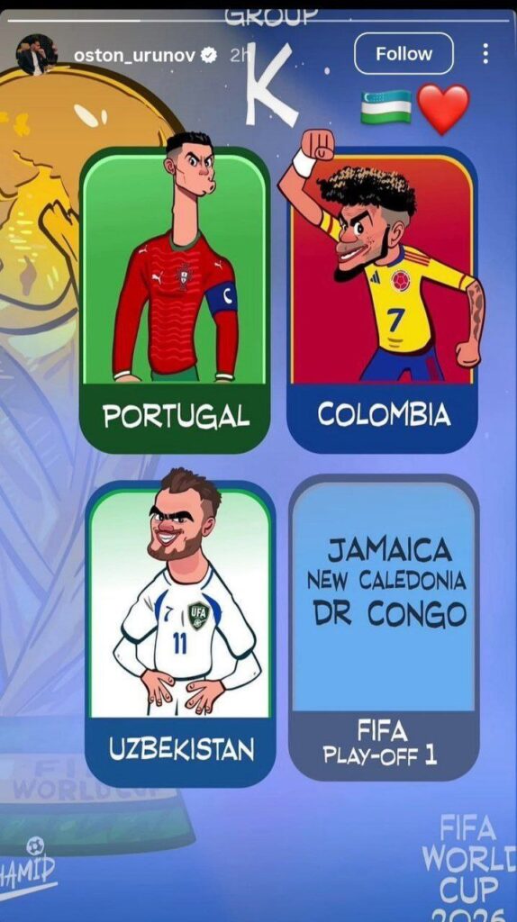 به گزارش هفت ورزشی، پس از برگزاری مراسم قرعهکشی جام جهانی ۲۰۲۶، تیم ملی ازبکستان در گروهی سخت قرار گرفت؛ جایی که باید با پرتغال، کلمبیا و برنده پلیآف ۱ رقابت کند. این گروه یکی از دشوارترین گروههای تورنمنت لقب گرفته است.