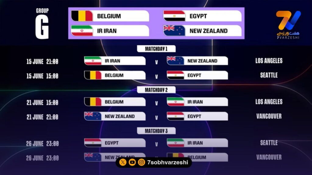 به گزارش هفت ورزشی، با انجام قرعه کشی و تعیین ساعت بازی های مرحله گروهی جام جهانی 2026، زمان و مکان بازی های ایران در این رقابت ها مشخص شد.