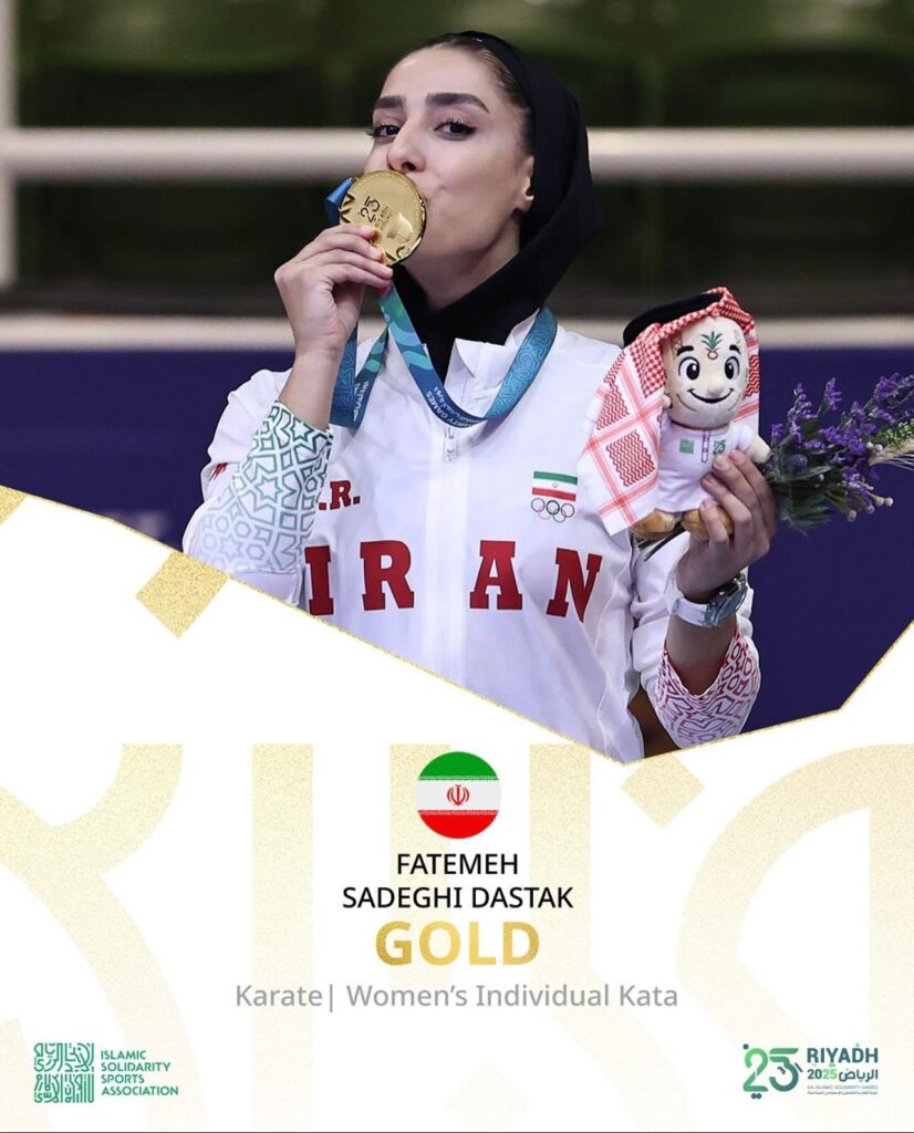 فاطمه صادقی در فینال کاتای بازی های همبستگی کشورهای اسلامی در سالن استادیوم شاهزاده بن فیصل روی تاتامی رفت. او به مصاف حریفی از کشور ترکیه رفت که با رای داوران به طلای این رشته دست یافت.