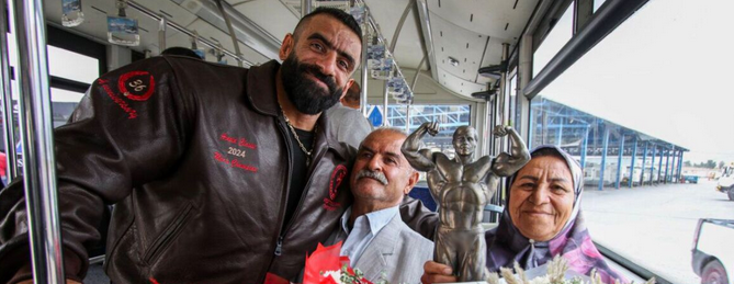 تصاویری از هادی چوپان، قهرمان بدنسازی را درکنار پدر و مادرش مشاهده بفرمایید.