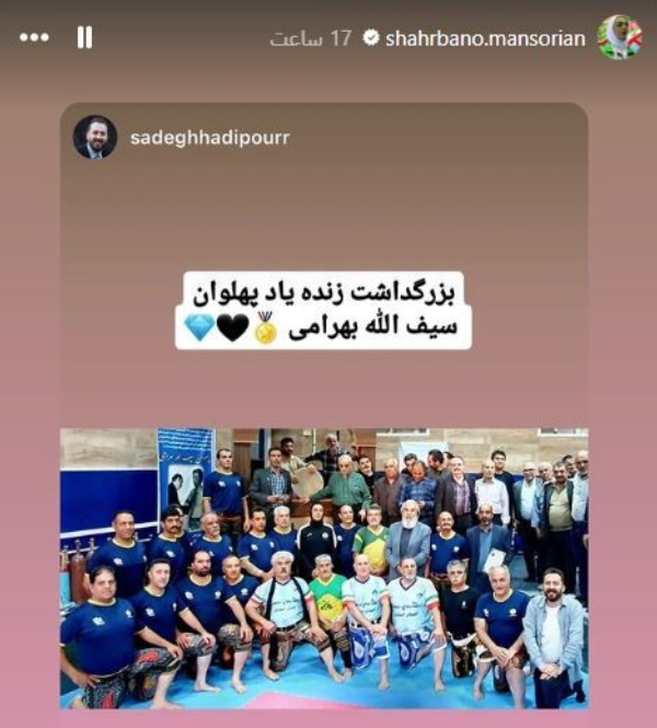 عکس شهربانو منصوریان در یک زورخانه را ببینید.