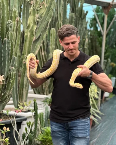 تصویری عجیب از وریا غفوری با یک مار عظیم دور گردنش را مشاهده می کنید.