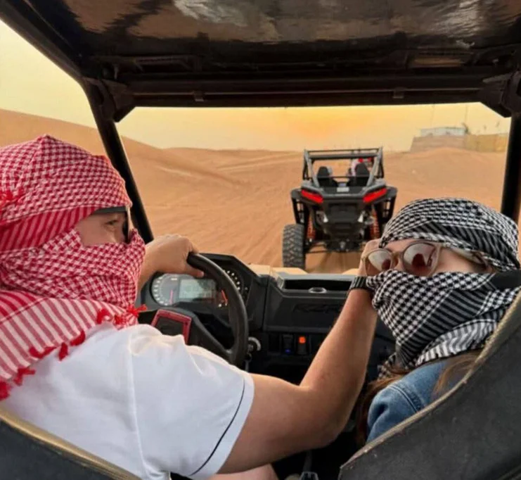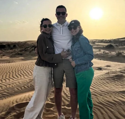 تصویر منتشرشده در فضای مجازی نشان می دهد که او در کنار همسر و دخترش حسابی در حال گردش و تفریح هستند به ویژه در تور صحرانوردی که رانندگی در کویر یکی از جذابیت های آن است.