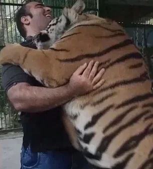 عکس بهداد سلیمی در قفس ببر در شهر مشهد را ببینید.