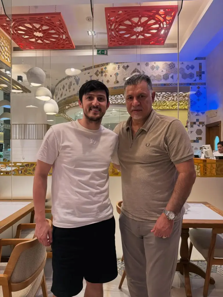 سردار آزمون بازیکن تیم ملی فوتبال ایران و مهاجم به نام الان ایران هست با استوره جهان و آقای گل ایران یعنی جناب علی دایی در دبی ملاقات کرد و عکس گرفتند.