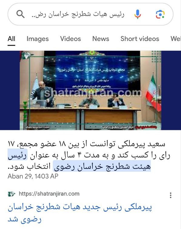 سعید پیرملکی، 29 آبان سال گذشته، رییس هیات شطرنج خراسان شد و هنوز هم این منصب را در اختیار دارد، کاری که با اساسنامه فدراسیون شطرنج جور در نمی آید.