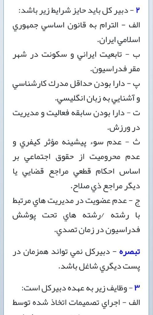 هر چه به اساسنامه فدراسیون شطرنج نگاه کردیم، تهدید رسانه ها به شکایت و تلاش برای پاک شدن مطالب انتقادی در شرح وظایف دبیر فدراسیون نیست اما در عوض، اساسنامه برای دبیر فدراسیون ویژگی هایی تعریف کرده که دبیرکل فعلی فاقد آن است.