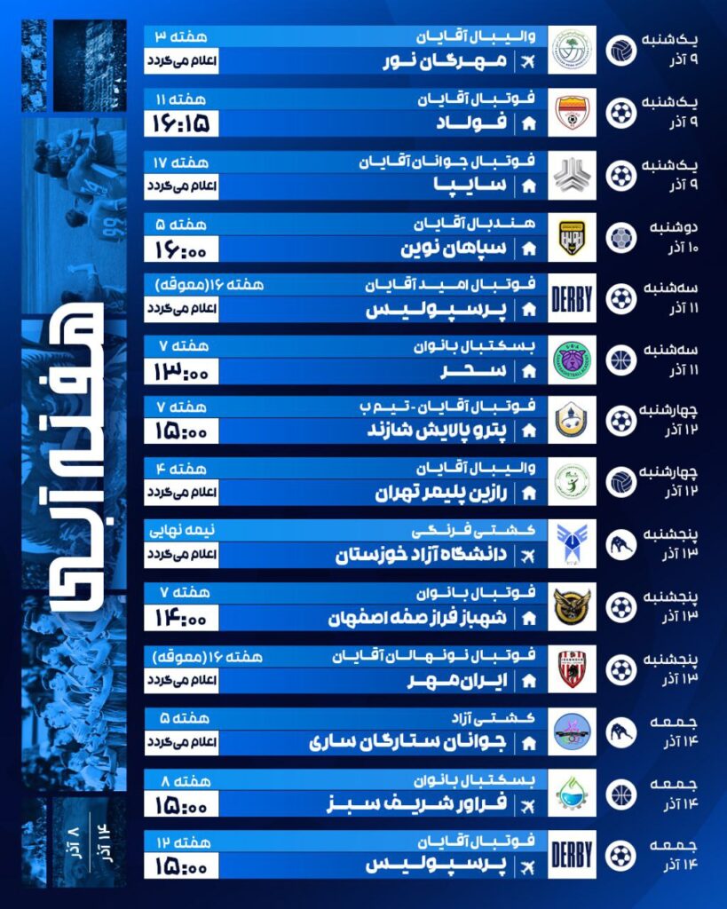برنامه بازی تیمهای مختلف باشگاه استقلال در هفته پیش روی: